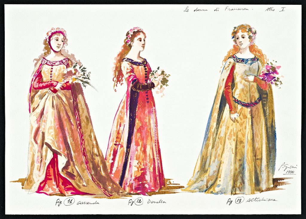 Pasquale Grossi – figurino per Francesca da Rimini di Riccardo Zandonai – Le donne di Francesca, Atto I (1991) – Archivio Storico Teatro Regio Torino WIKITRT0983 di Teatro Regio Torino, CC BY-SA 4.0, da Wikimedia Commons