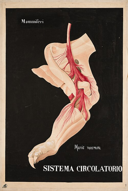 MAC TAV 0040a Tavola parietale Mammiferi Manis macrura sistema circolatorio di Museo di Anatomia comparata Giovanni Battista Grassi, Pubblico dominio, da Wikimedia Commons