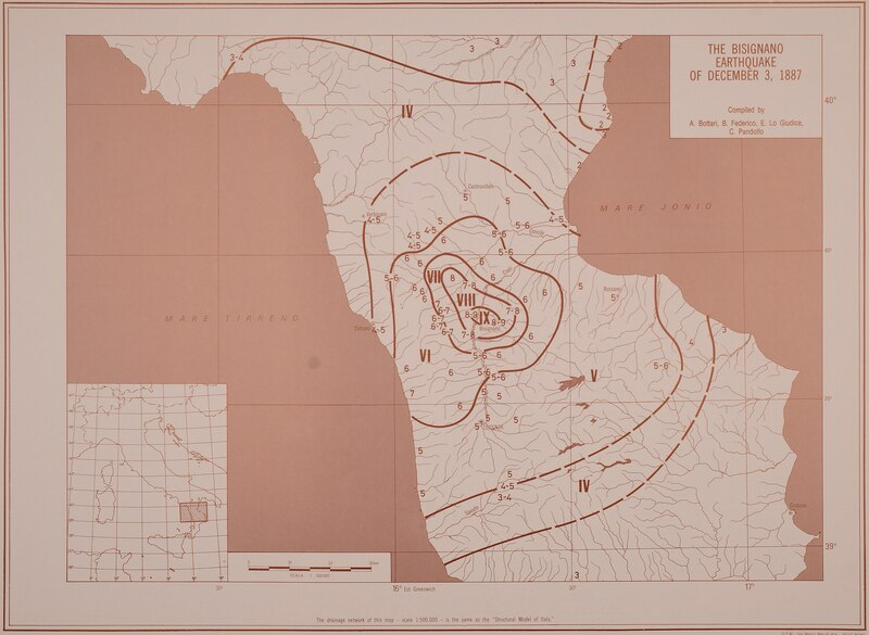 Atlas of isoseismal maps of Italian earthquakes CNR – Inventario 112 – carta geografica relativa al terremoto di Bisignano del 3 dicembre 1887 di CNR, CC BY-SA 4.0, da Wikimedia Commons