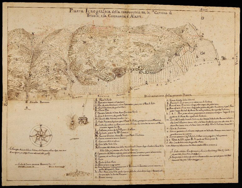 Pianta iconografica della controversia tra la Certosa di Trisulti e la Communitaà di Alatri PASCA CA 79 di Archivio Storico di Alatri, Pubblico dominio, da Wikimedia Commons